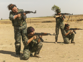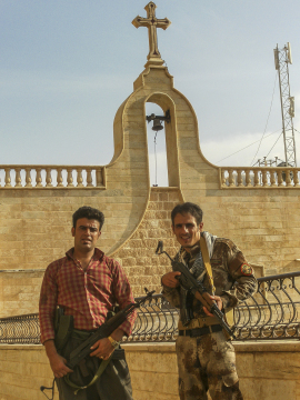 Kurden halten Wache im syrisch-orthodoxen Kloster Mar Mattai. Die Front ist nur einen Kilometer entfernt: