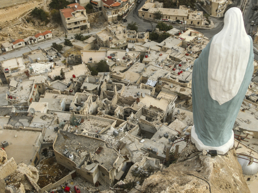 Eine von IS-Leuten zerstörte Kirche. 2015 fielen sie ins Khabur-tal ein, wo christliche Assyrer in 37 Dörfern lebten. Erst durch den Einsatz alliierter Flug-