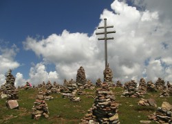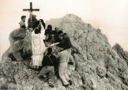 1989: Mit Hilfe eines Hubschrau-bers setzen Bergfreunde aus Bologna ein eisernes Gipfelkreuz wieder zusammen, das von Wind und Sturm gefällt wurde. Darüber kommt es zu einem heftigen Streit mit Ugo Pompanin, dem Präsidenten der Regole, einer basisdemo-kratischen Genossenschaft von einheimischen Ladiner-Familien.
