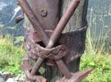 auf dem Amboss erhitzt und zu Schlaufen gebogen. Der verzinkte Pickel erinnert an eine Tour am Gasherbrum II im Karakorum, wo der junge Schweizer bei einem Lawinenabgang nur knapp dem